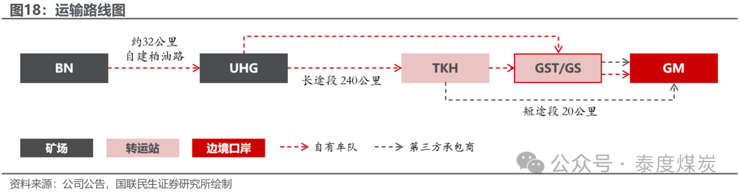 自有输送体系完善,配套建设抓续优化。公司于蒙古国内以UHG工场交货条目和TKH目田承运东谈主条目销售,使用于Tsagaan Khad(TKH)及GS Terminal(GST)的转运设施出口至中国。公司使用卓越480辆自有双挂重型公路卡车输送煤炭家具,领有BN→UHG矿场约32公里自建柏油路、UHG→GS的年货运盘活身手为1800万吨的公路,以挑升自有输送车队将煤炭从UHG输送至TKH继而GST,煤炭于TKH或GST存放,在蒙古国海关办理出口清关后通过卡车经由甘其毛王人(GM)出口至中国。从GST输送至GM由公司自有输送车队登第三方承包商进行,从TKH出口的煤炭则由第三方承包商出口。此外,在配套建设方面,为摈斥蒙古国边境的瓶颈堵塞情况及支抓公司的增长标的,公司于2012年与Erdenes Mongol LLC合股,合作扩充GS边境查验站,婉曲身手从1000万吨/年提高至约2500-3000万吨/年,2021-2023年间进一步扩建至4000-4500万吨/年。