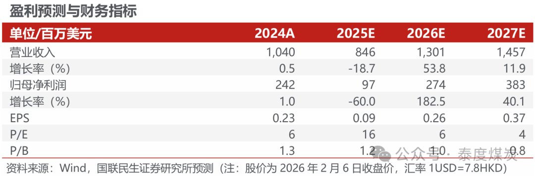 Ø 分成适度渐渐清除,2026年有望开启分成回购,股息率较高。公司2017年债务重组后金钱欠债表渐渐开辟,于2023-2025年完成永续证券反璧和高息单子置换,进一步撤销分成进击、裁汰融资成本。刻下公司已进入“低净债务”时期,且BKH技俩老本开支岑岭已过,斟酌2026年煤、金共振盈利提高,或餍足优先单子对分成的适度性条目,有望开启股息分拨。以2026年预测归母净利润2.74亿好意思元,分成比例分歧为30%、50%,以及2026年2月6日市值狡计,股息率可达5.2%、8.7%。
