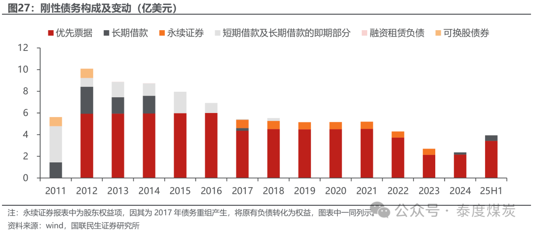 财务方面,受上一轮煤炭周期低谷影响,公司曾于2017年靠近较为严重的偿债危急,通过债务重组起死复活。尔后跟着蒙煤出口量规复和煤价企稳,公司金钱欠债表加快开辟,于2023-2025年完成永续证券反璧和优先单子置换,进一步撤销分成进击和裁汰融资成本。历经窘境回转,公司已进入“低净债务”以致“净现款”时期,转型为高分成后劲的优质标的。咱们复盘公司债务变动并针对分成适度条目进行测算,瞻望2026年公司将具备分成基础。