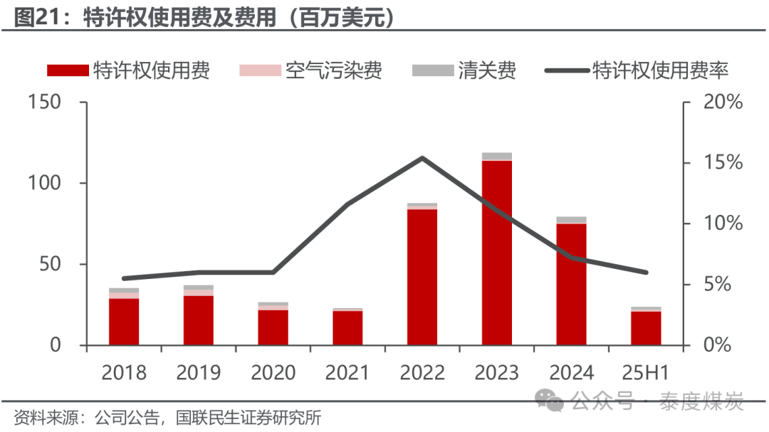 特准权使用费率降幅显然。公司出口加工煤炭家具累进特准权使用费率为5%-8%,出口原煤家具为5%-10%,字据蒙古国联系政府部门指定的每月参考价钱而定。自2023年10月1日起,通过蒙古证券交游所(MSE)平台出口及买卖的煤炭特准权使用费接收MSE发布的每月平均交游价钱狡计。历史阐扬来看,公司平均售价与参考价钱相较一致,但自2021年7月起,真钱牛牛app下载因边境婉曲量问题导致寄托期延长及空匮现货交游,政府部门订定的参考价钱与合约价钱之间存在较大各异,因而费率出现大幅上升。跟随2023年后价钱各异逐步缩小,费率相应裁汰。25H1,公司许权使用费率降至6.0%,同比-1.9pct。