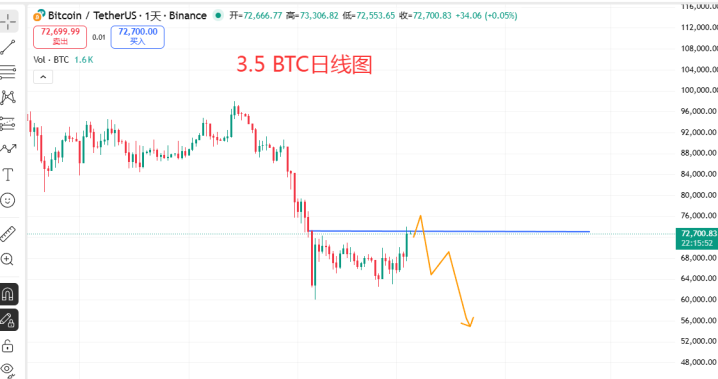 综上,现在是反弹不是回转,商场在75000-76000存在第三波下落趋势,跌到55000反弹,然后再插针下落或者底部颤动吸筹,阿谁时间才是最好抄底技术,时分周期可能鄙人半年8-10月区间,最好抄底点位一定40000隔壁,但不一定会给到契机,但55000的价钱很概况率会看到,是以来回75000-77000分批作念空,磋议55000
