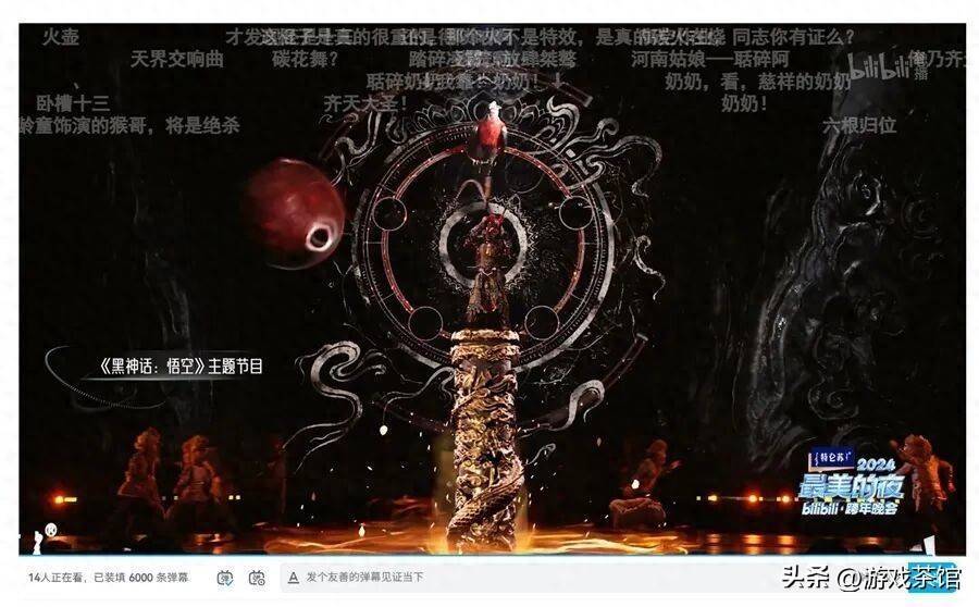 旧年跨年晚会上《拳皇》《黑传说:悟空》《宝可梦》和《万古不时》等热点游戏IP按序登台。其中《黑传说:悟空》栏杆玉砌的舞台给我留住最深远的印象。经制作主谈主冯骥重新撰写案牍,节目组尽心编排下,规复度拉满,成了当晚最吸睛的节目之一。