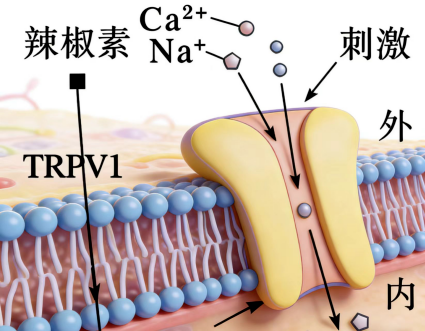 TRPV1受体感受辣的过程。图源于网罗