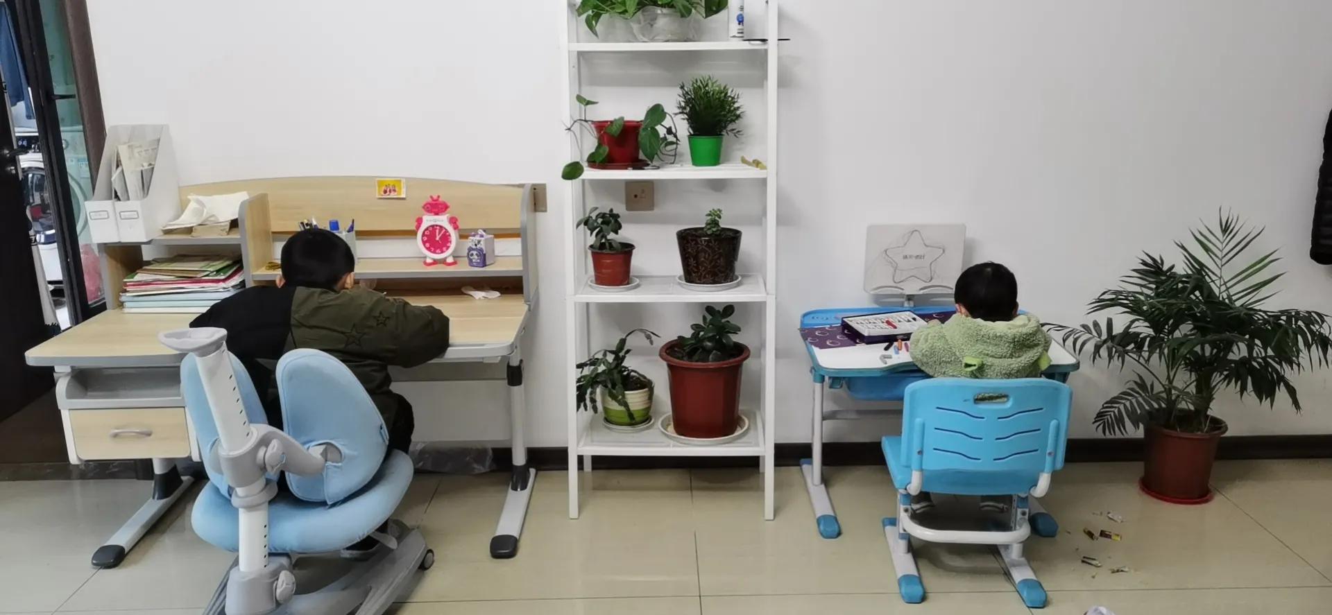 孩子的书桌放在客厅,在父母的眼皮子下面,孩子当然不敢开小差,而况父母和孩子一同在书桌上学习,有着很好的学习氛围,这亦然以身作则的最好形态,根蒂无须裕如的话。